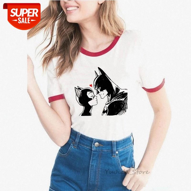 Funny T Shirts Women Batman Catwoman Kiss T Shirt Female Summer Top Harajuku Kawaii Tshirt Femme Korean Tumblr Clothes Camisetas Ci3q